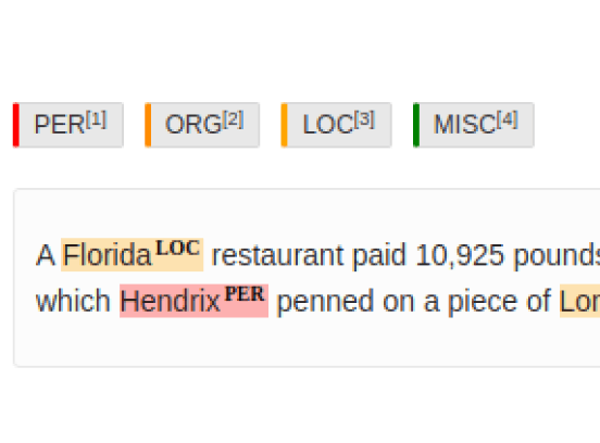 If you want to perform named entity recognition (NER) on a sample of text, use this template. This template supports overlapping text spans and very large documents.