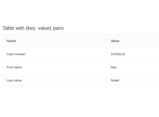 <Header value="Table with {key: value} pairs"/>